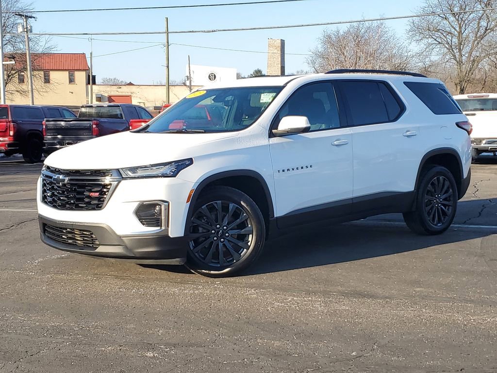 2023 Chevrolet Traverse RS AWD, V6, 3.6L, 42,400 miles. Located in Paw Paw, MI, this sport-styled Chevrolet Traverse RS pairs powerful performance with refined comfort and technology. The 3.6L V6 delivers smooth acceleration and confident towing capability, while the intelligent AWD system provides traction and stability through Michigan seasons. With only 42,400 miles, this Chevrolet Traverse offers long-term reliability and value. Inside, enjoy premium features like a heated steering wheel for cold mornings, Remote Start for convenient engine warm-up, and a BOSE stereo that makes every drive sound exceptional. Safety and convenience technologies include Lane Keep Assist for added lane-departure protection and Hands Free Bluetooth for seamless call and media control. The RS trim adds sporty exterior styling, upgraded interior accents, and performance-tuned handling. This Chevrolet Traverse represents the best price in the area, combining low mileage, robust V6 power, and desirable amenities at a competitive value. Ideal for families, commuters, or anyone seeking a spacious crossover with towing capability and modern tech. Located in Paw Paw, MI, this vehicle is ready for test drives and inspections. Don't miss the opportunity to secure a well-maintained 2023 Chevrolet Traverse RS with AWD, 3.6L V6, and premium features at the best price. Schedule your visit today.